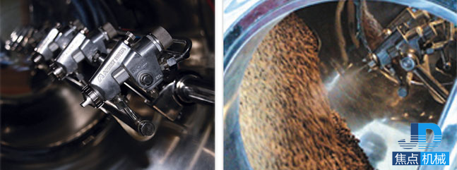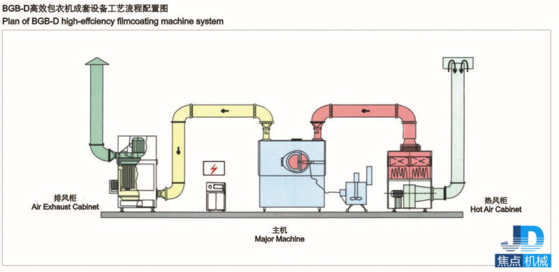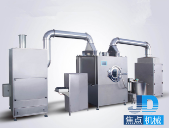 片芯在包衣機(jī)潔凈密閉的旋轉(zhuǎn)滾筒內(nèi),不停地作復(fù)雜軌跡運(yùn)動(dòng),翻轉(zhuǎn)流暢,交換頻繁,按工藝流程和合理的工藝參數(shù)自動(dòng)噴灑包衣介質(zhì),同時(shí)熱風(fēng)供給在排風(fēng)和負(fù)壓作用下,穿過片芯從底部篩孔排出,使包衣介質(zhì)在片芯表面快速干燥,形成堅(jiān)固、致密、光滑的表面薄膜。